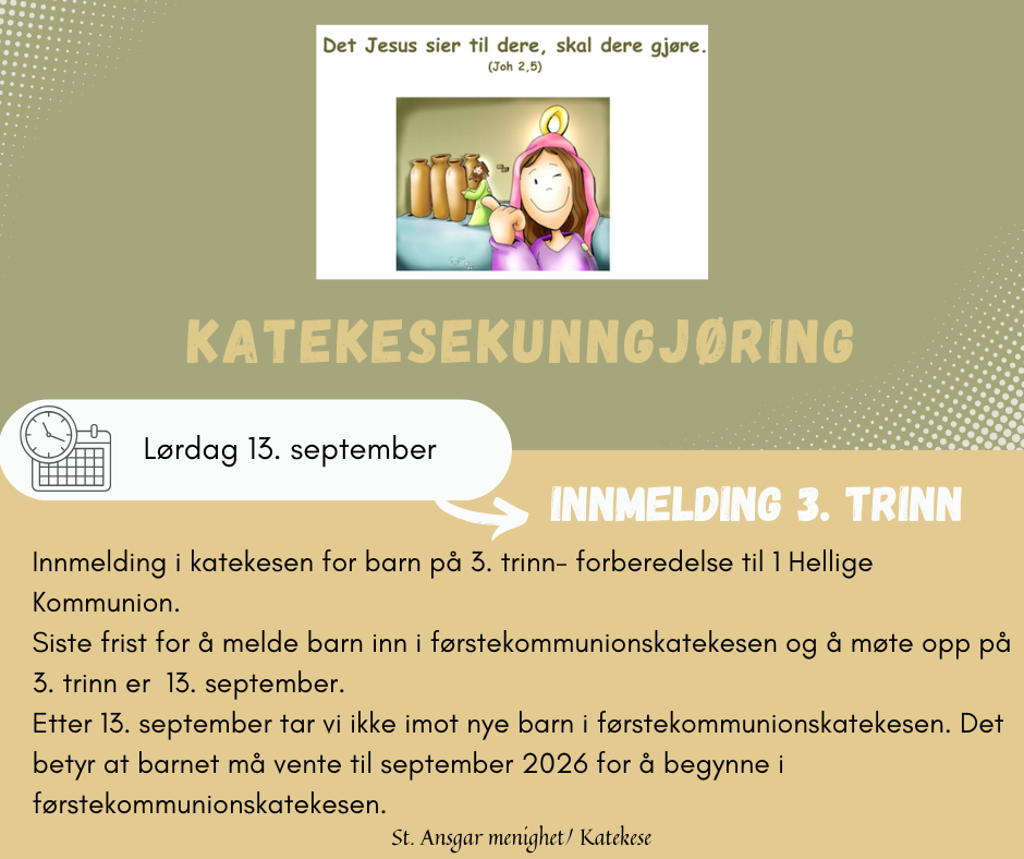Innmelding – forberedelse til 1. Hellige Kommunion
