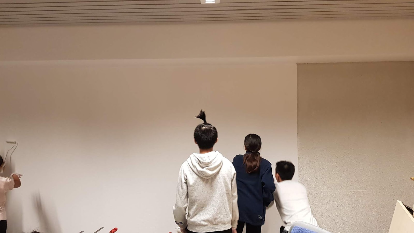 Våre flinke ungdommer vil gjerne ha et triveligere ungdomslokale, og er ikke redde for å ta i et tak. Se så fint og lyst det blir!