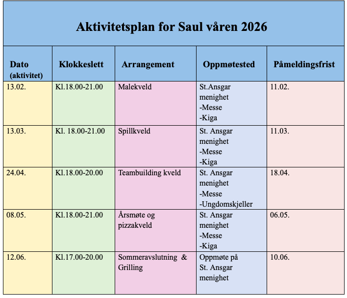 Aktivitetsplan våren 2026