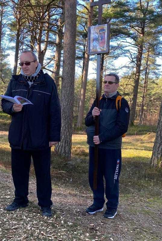 Mens vi gikk ba vi rosenkransen som p. Dawid ledet. Vi ba også rosenkransen for oss selv eller i små grupper. Etter lunsj ba vi Angelus sammen. Underveis hadde vi små pauser og to lange matpauser. Vi fikk også tid til å stifte nye bekjentskaper. Nesten framme på Stella Maris vandret vi en kilometer i Sjøsandskogen og Furulunden mens vi ba korsveien.